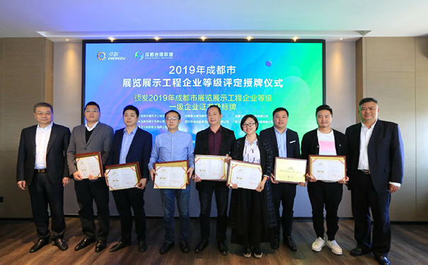 10月28日,2019年成都市展覽展示工程企業等級評定頒證儀式在成都天府新區舉行,經過3個月的評定,最終成都鼎尖展覽展示有限公司、榮獲成都市展覽展示工程企業一級資質稱號。